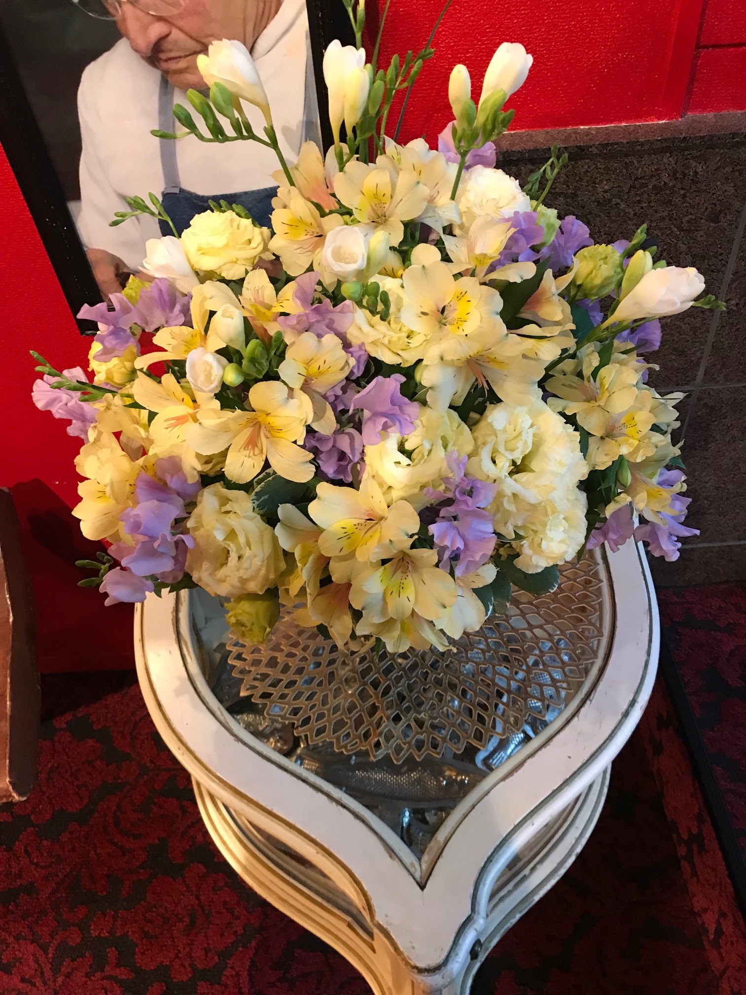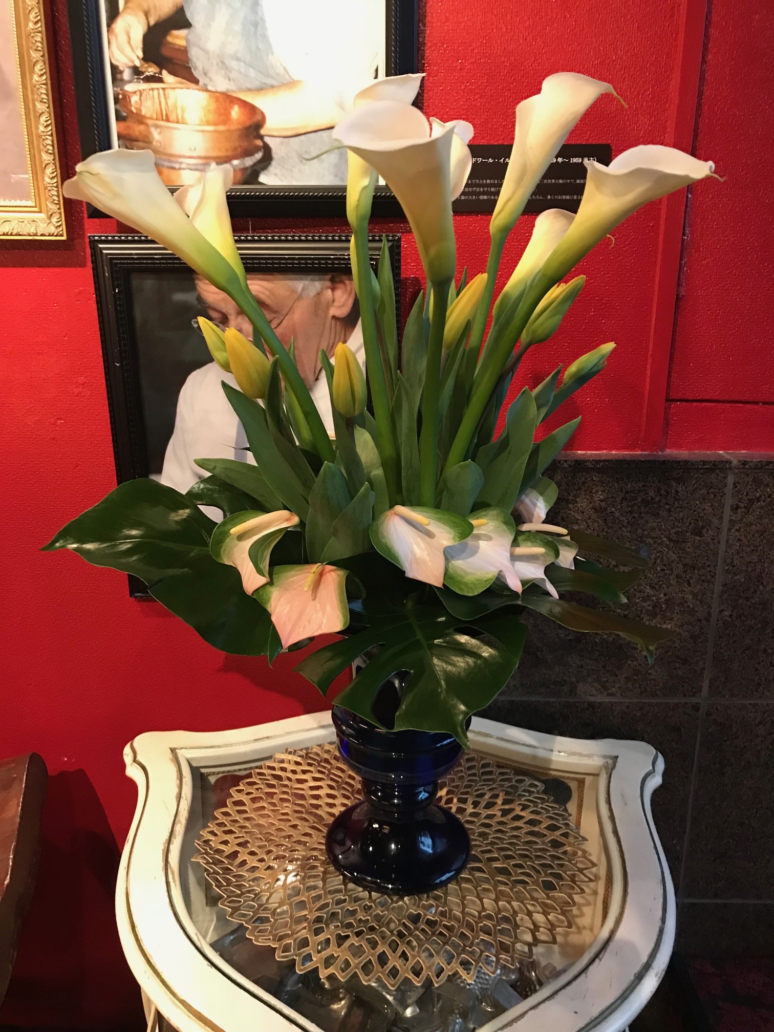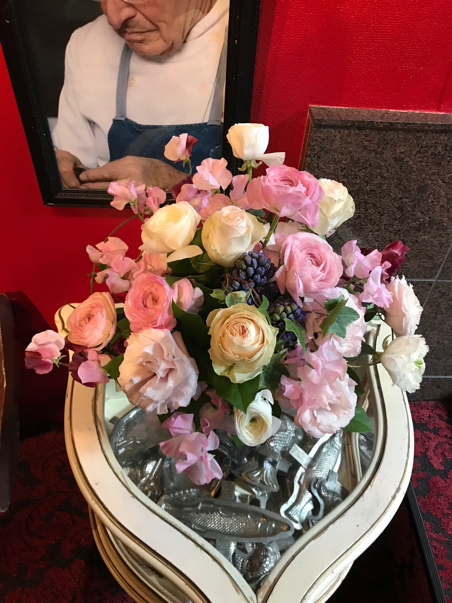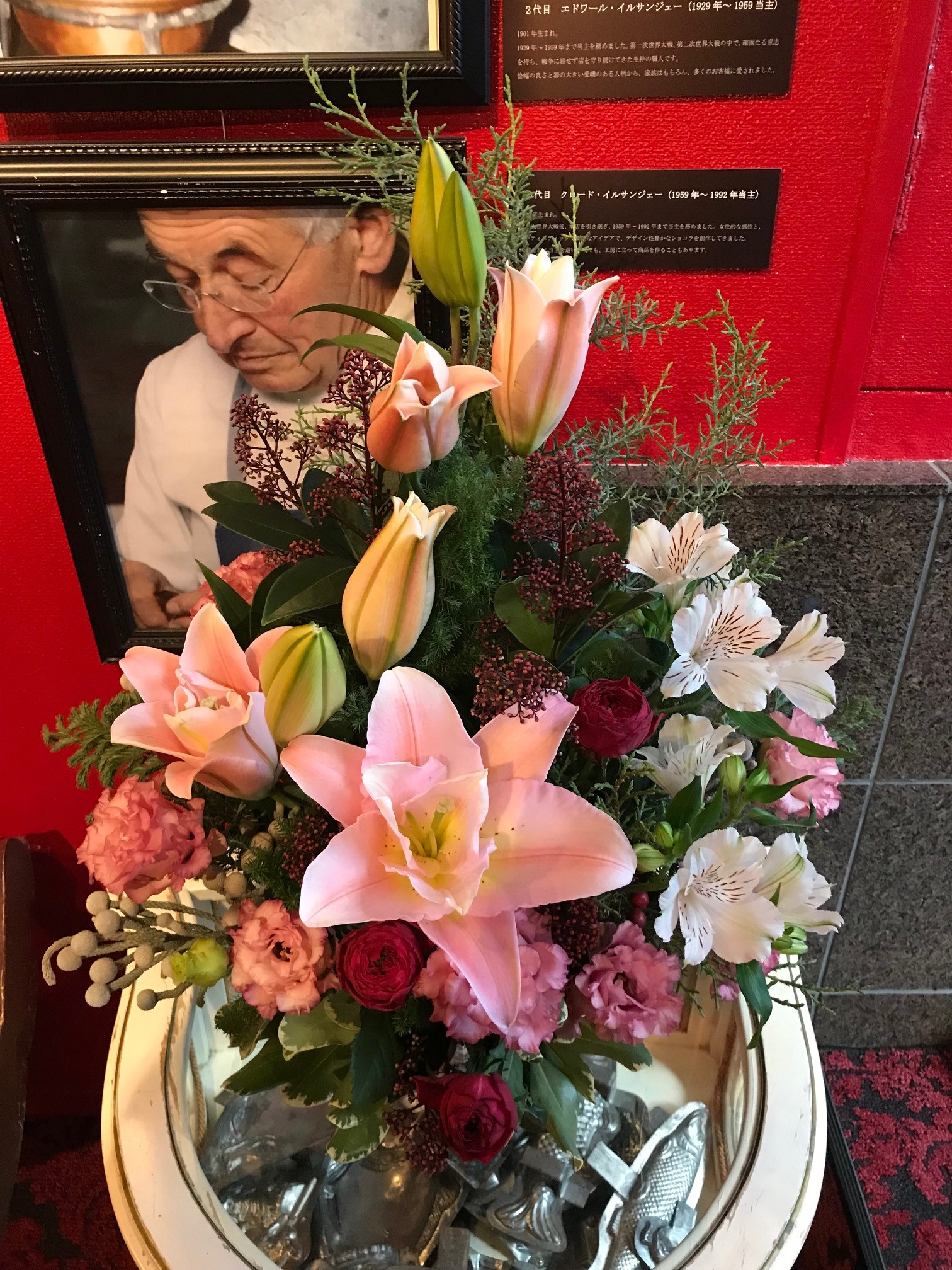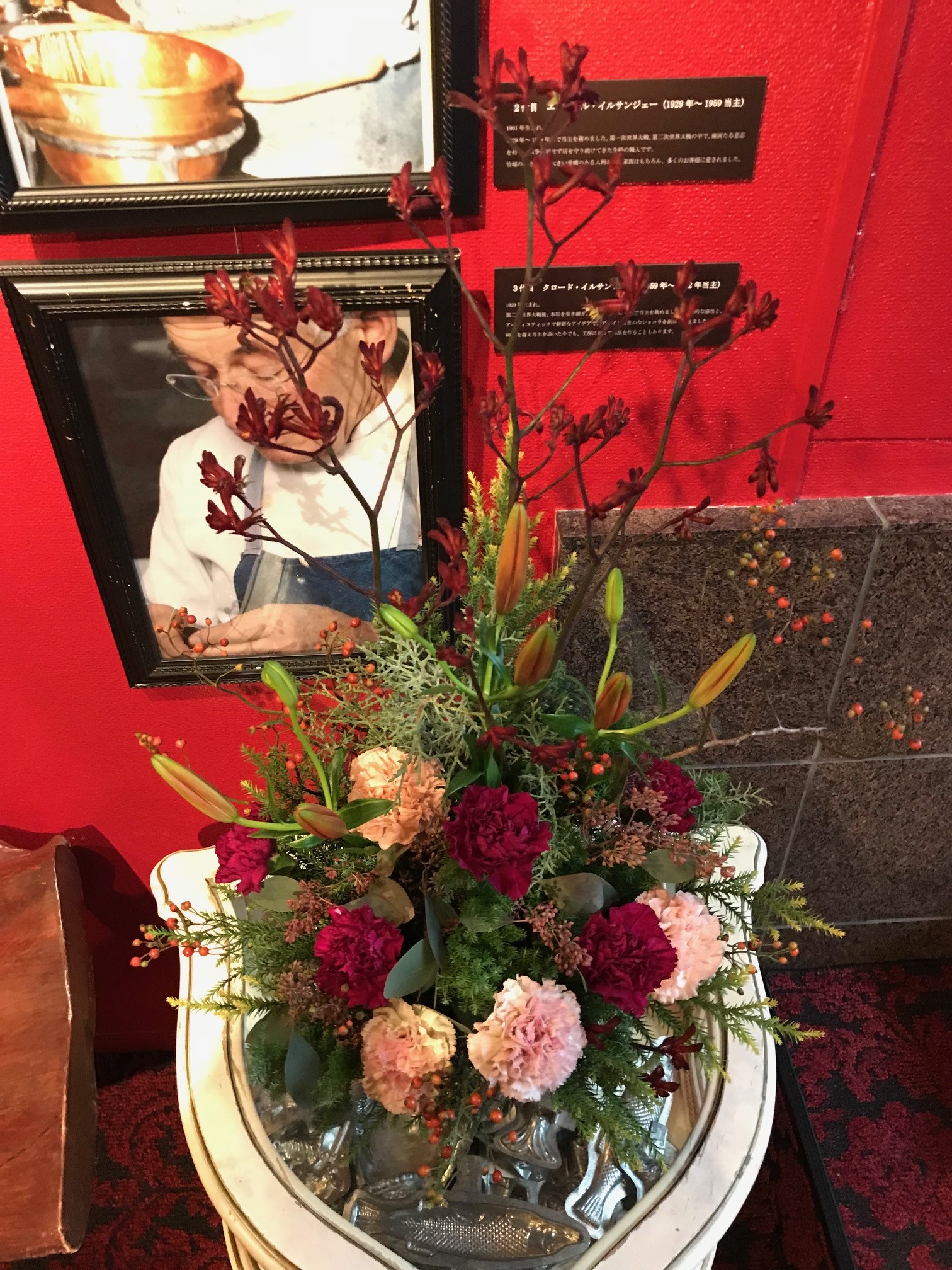 こちらは、117年一族が守り続けているフランスの名門ショコラティエ「イルサンジェー」様の季節のお花の活け込み例です。一週間毎にお花を活け替えさせていただいております。
