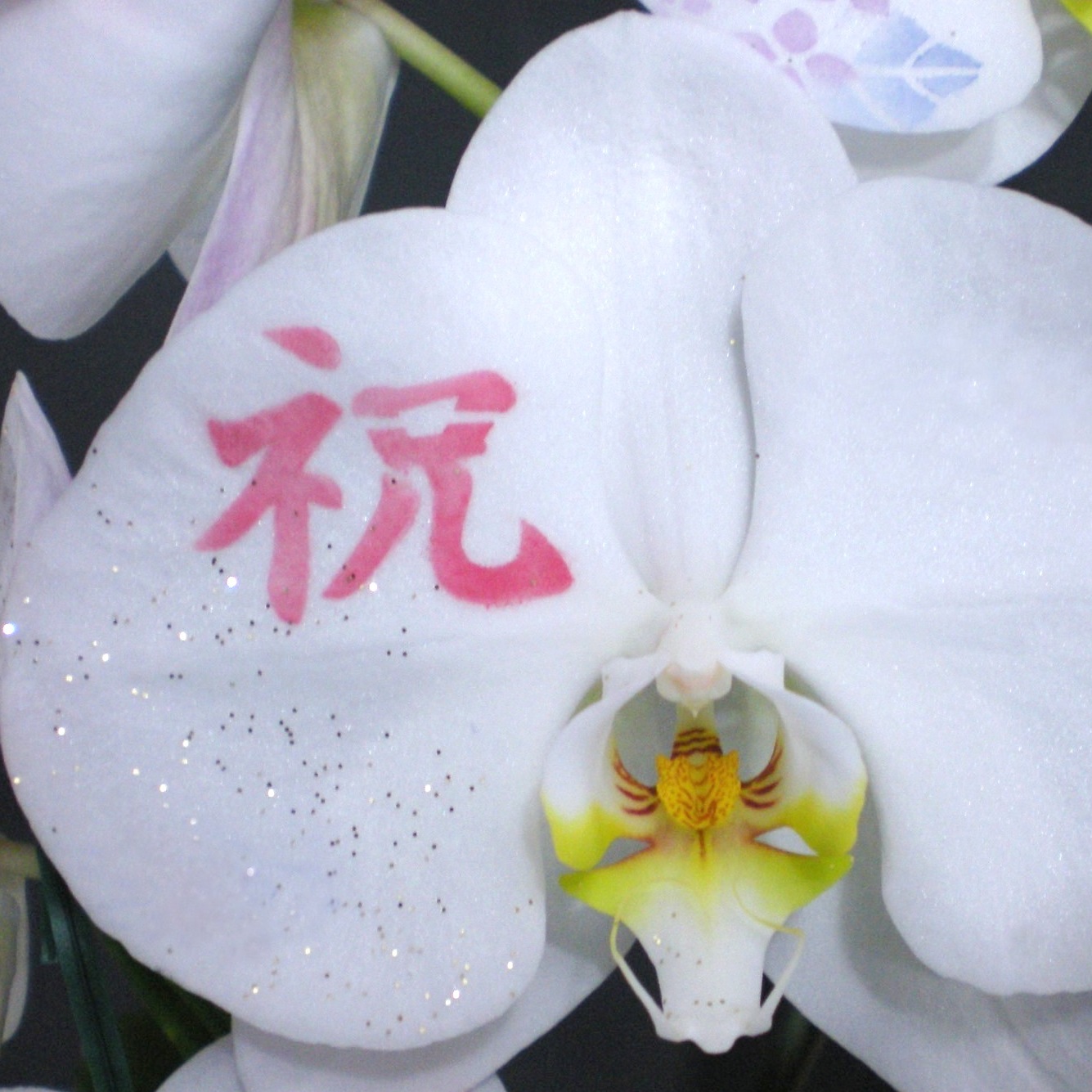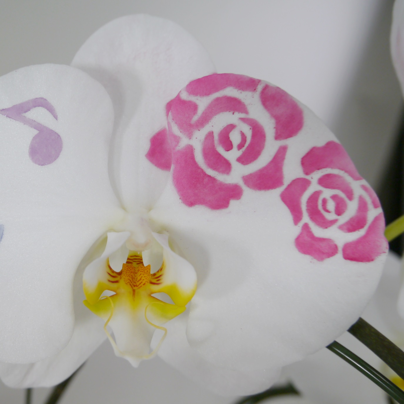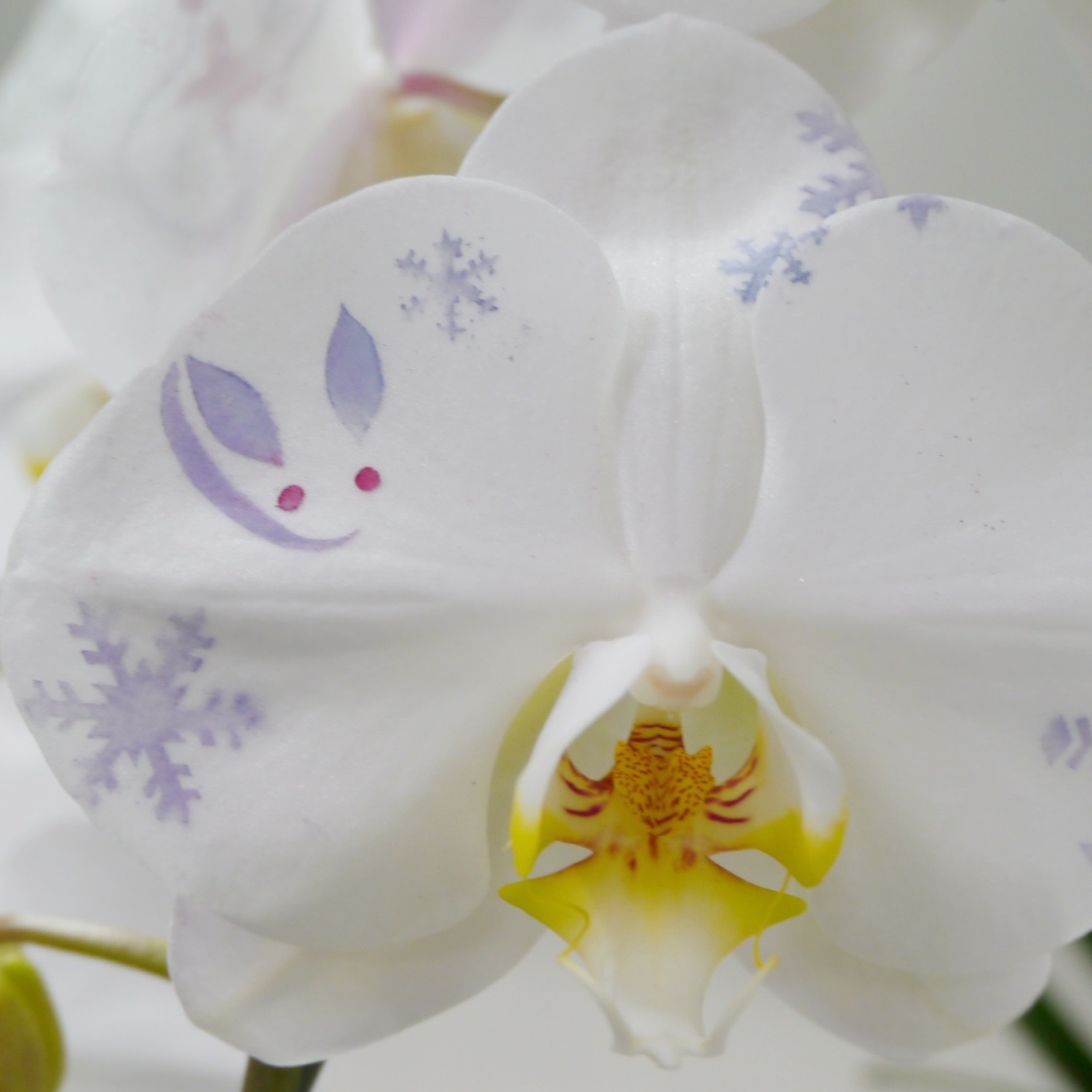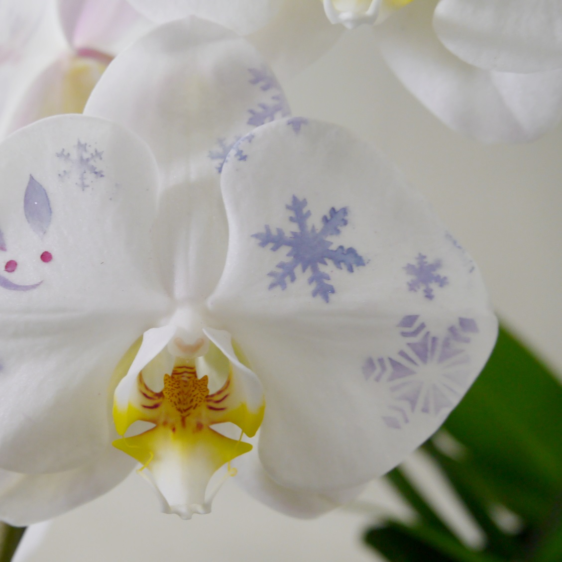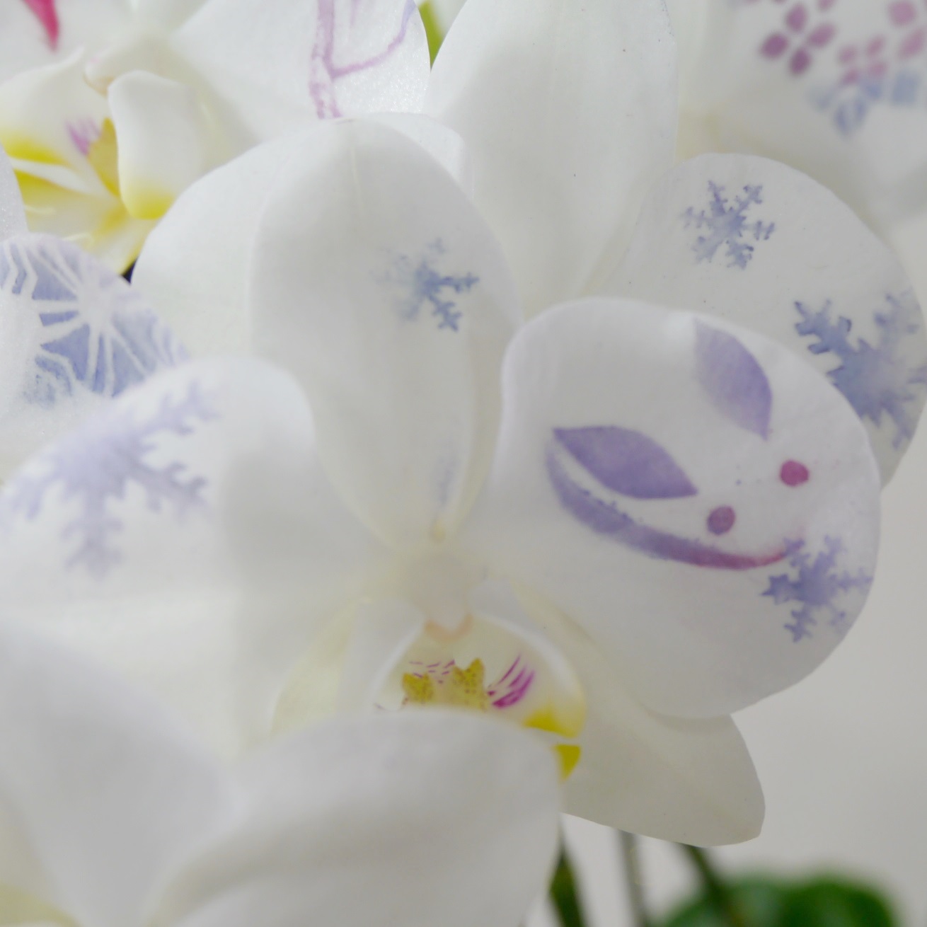 季節の絵柄やお祝いのメッセージを手作業で、胡蝶蘭に丁寧にお化粧した芸術品