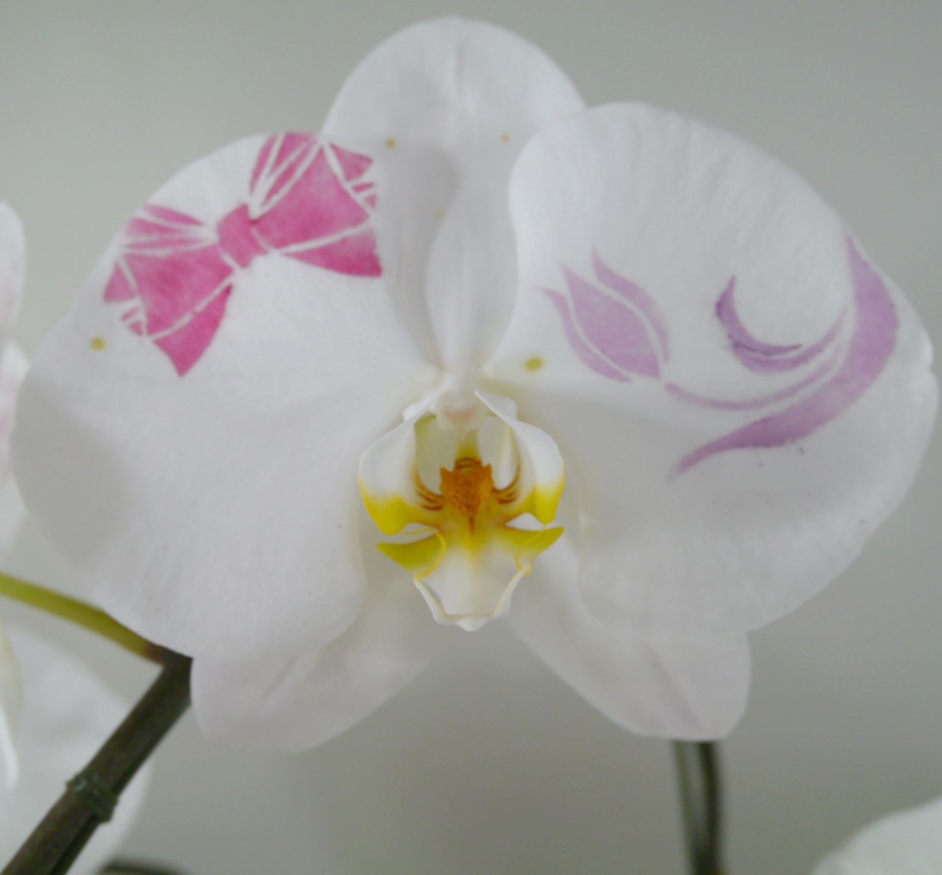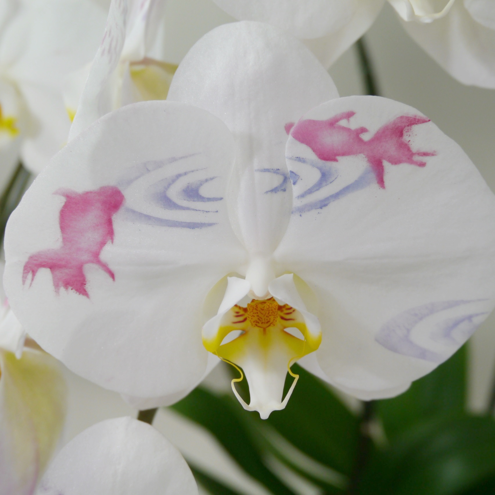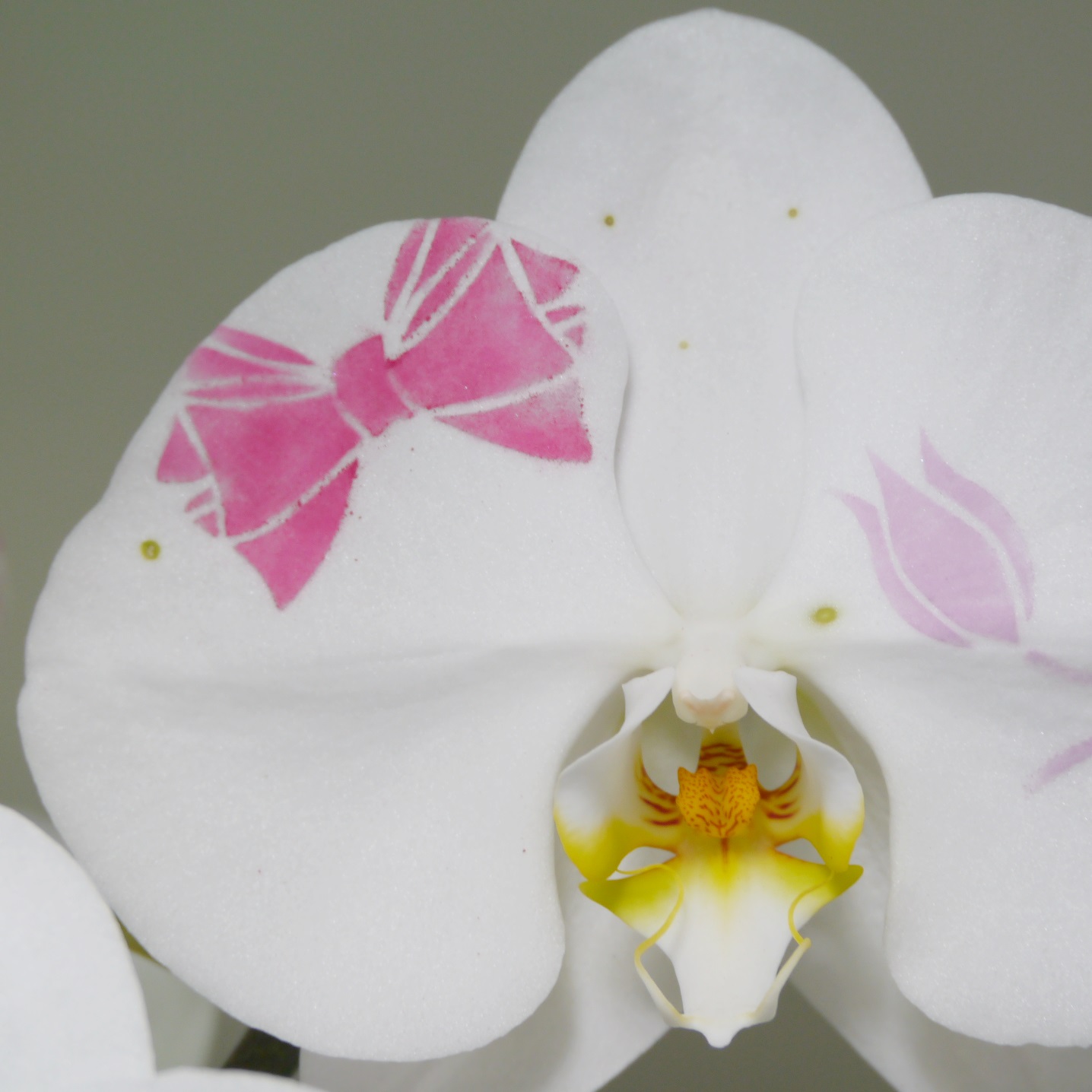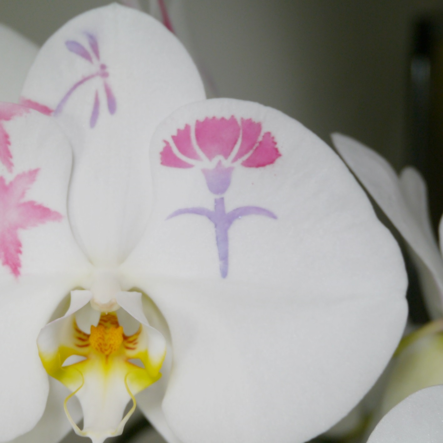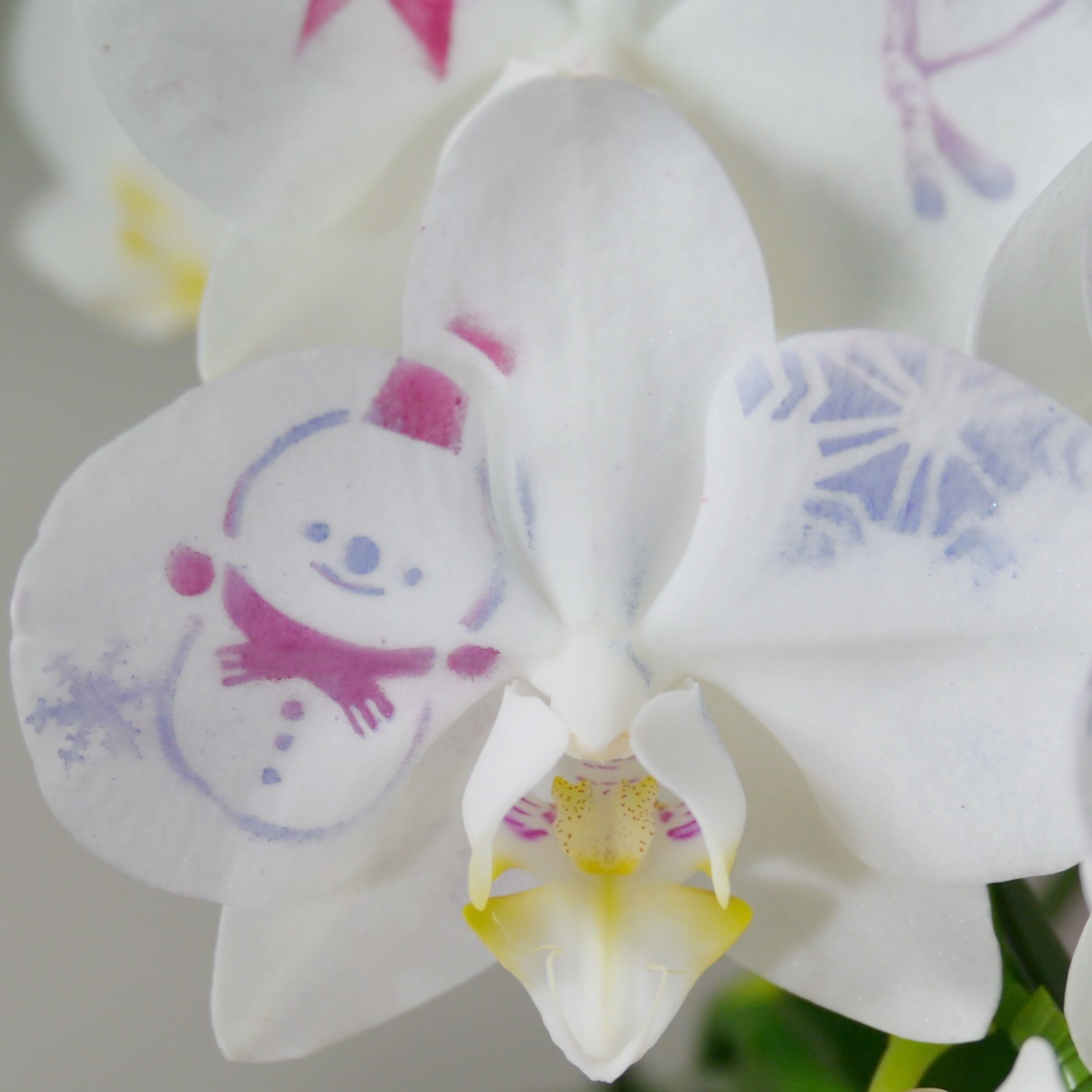季節の絵柄やお祝いのメッセージを手作業で、胡蝶蘭に丁寧にお化粧した芸術品