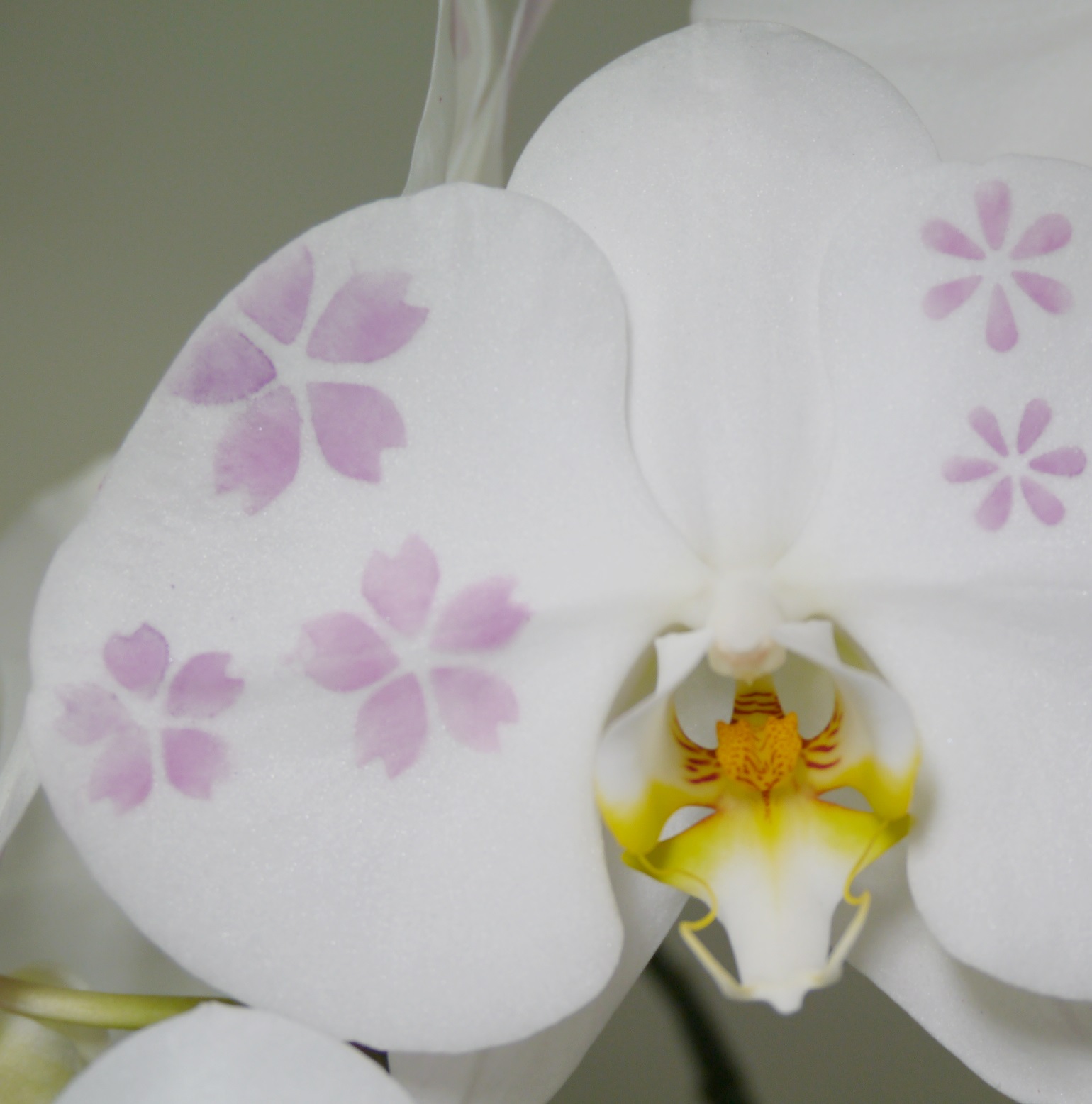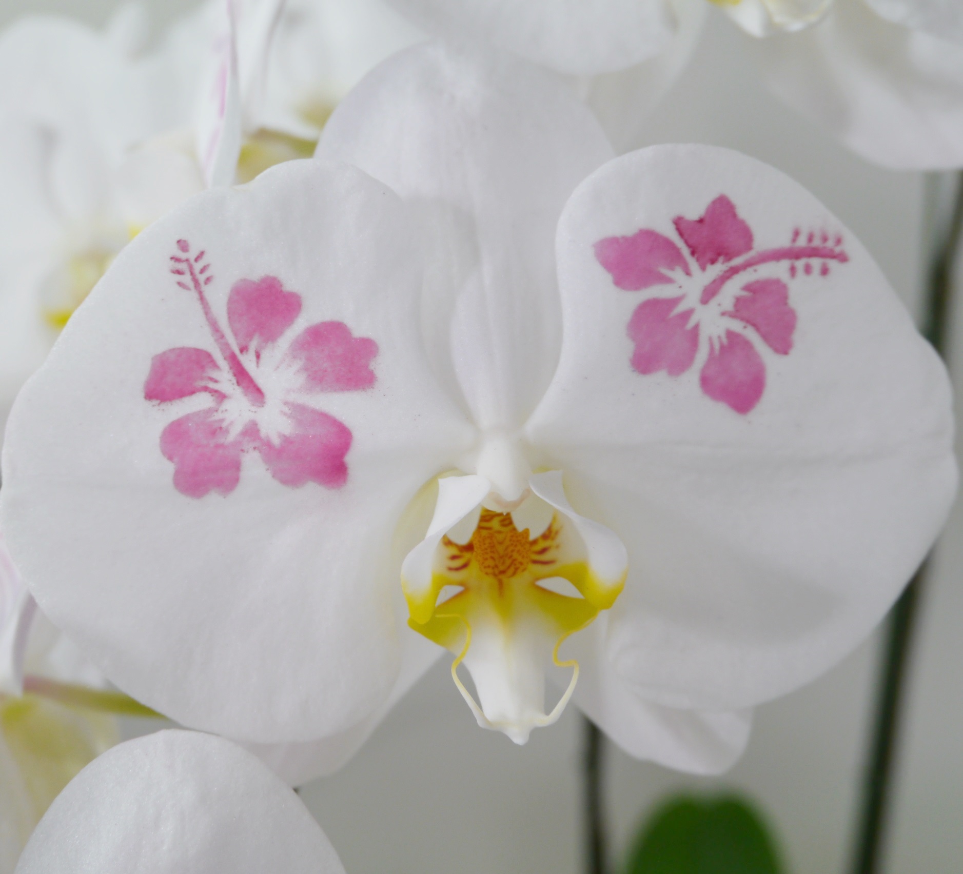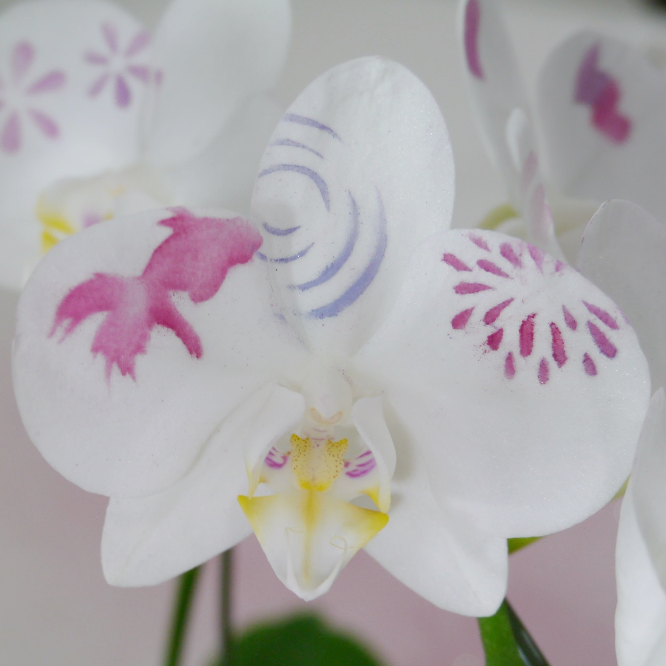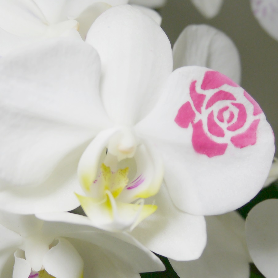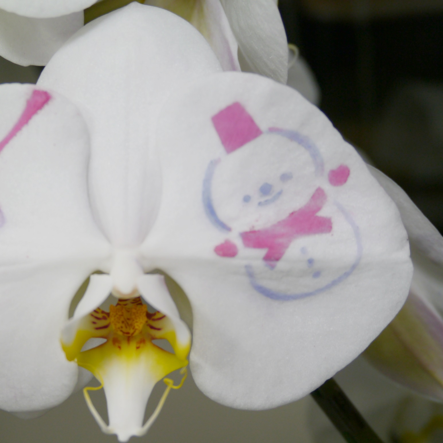 季節の絵柄やお祝いのメッセージを手作業で、胡蝶蘭に丁寧にお化粧した芸術品