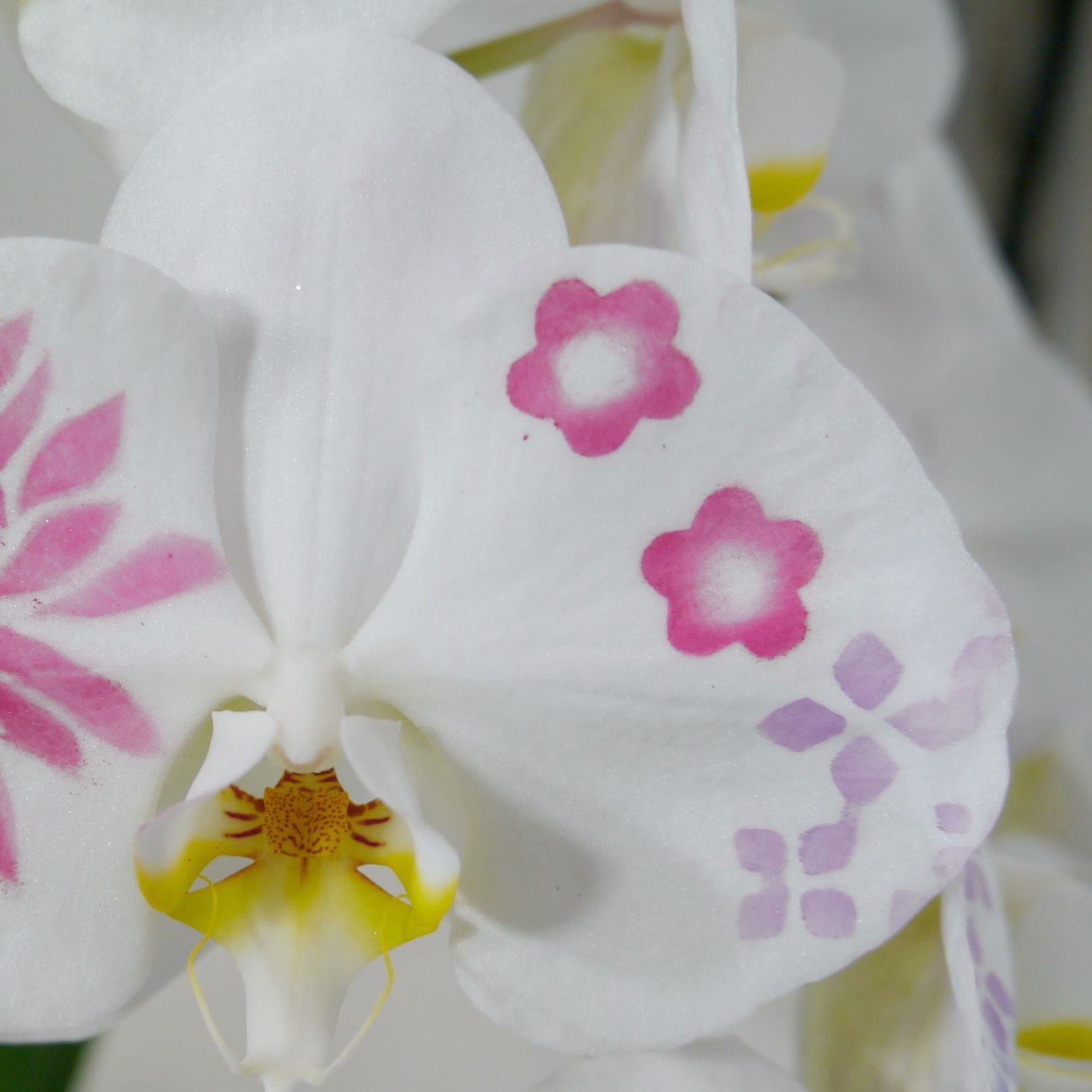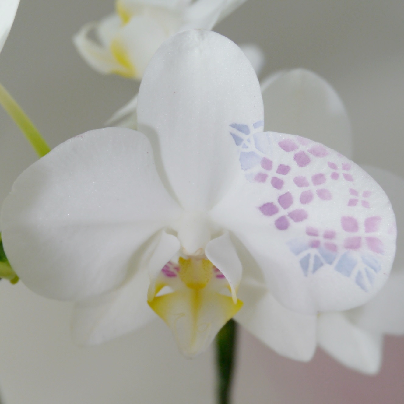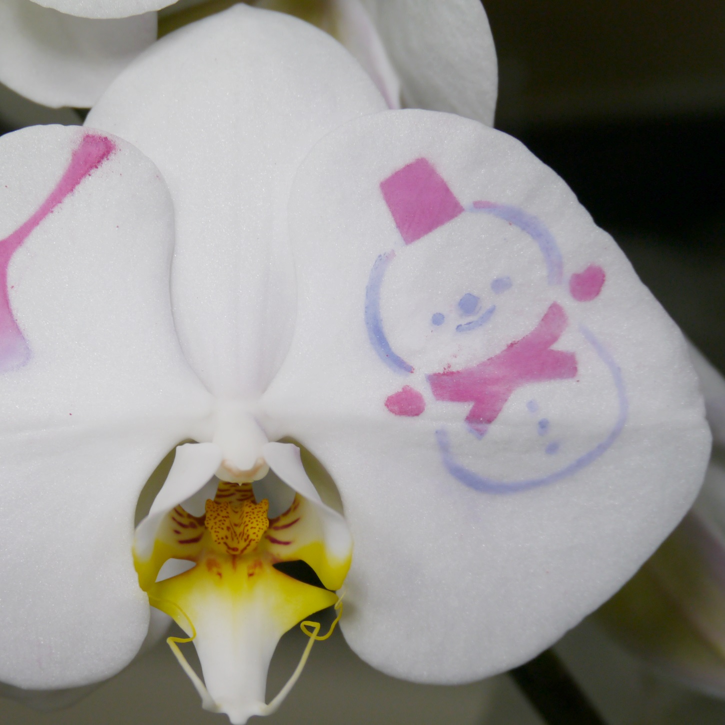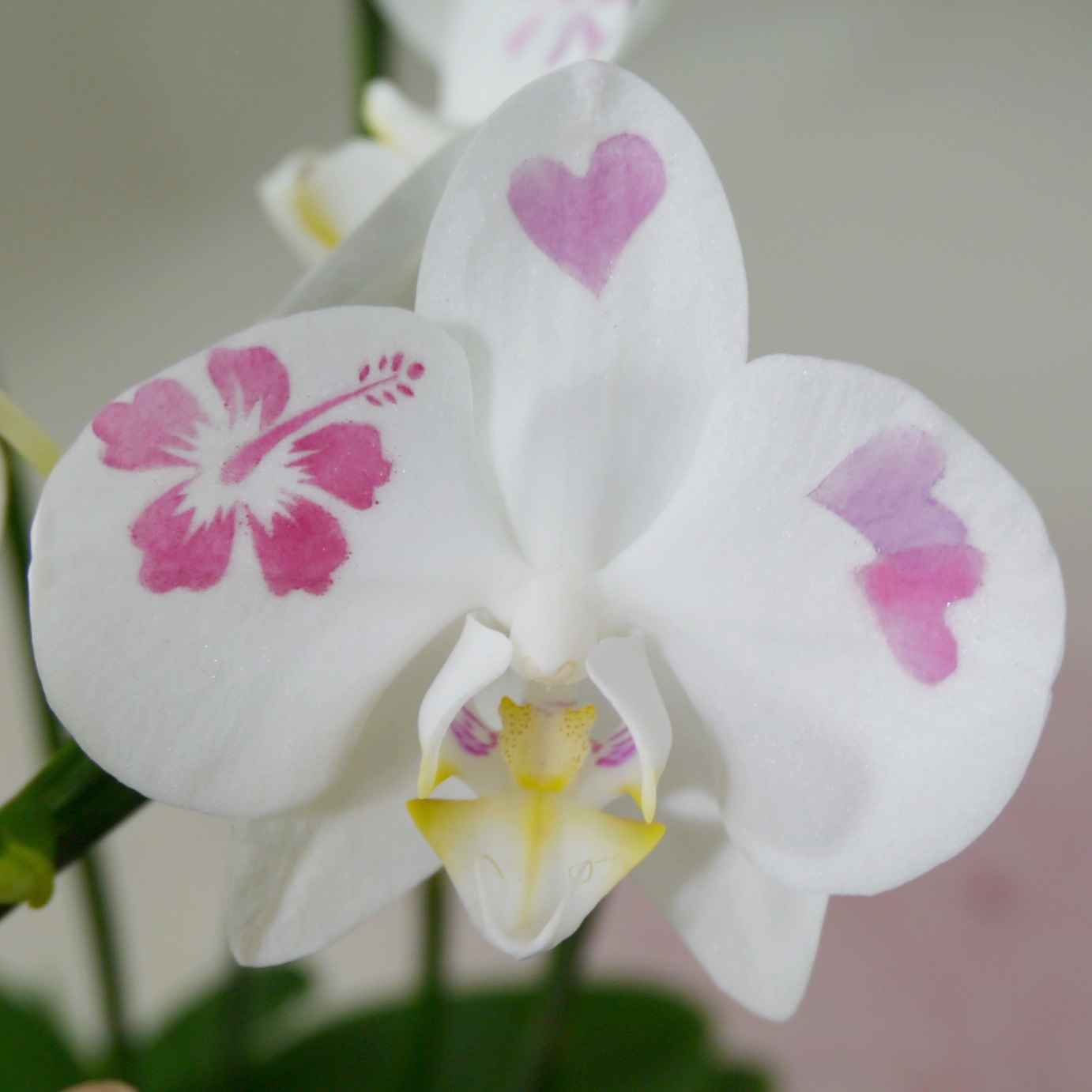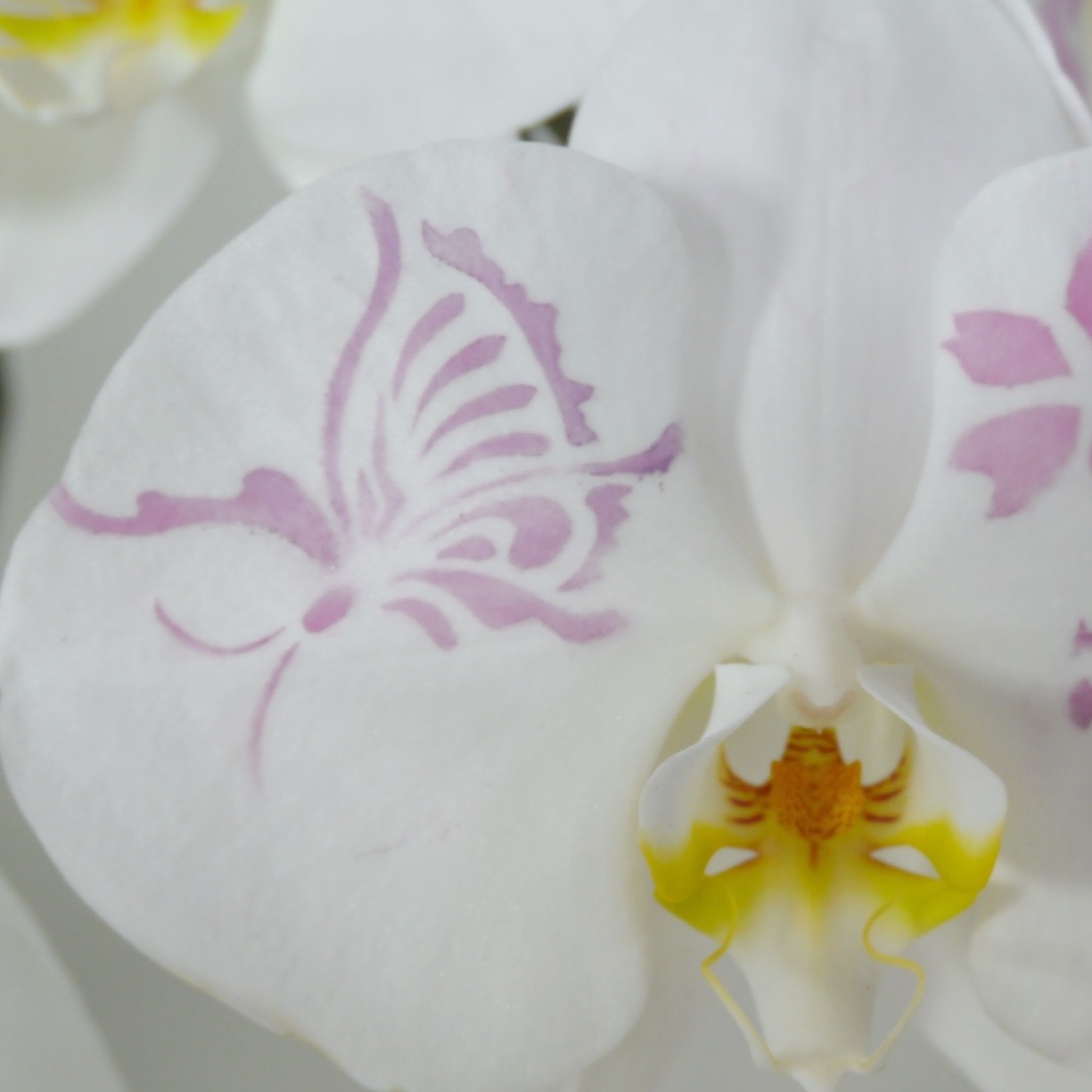 季節の絵柄やお祝いのメッセージを手作業で、胡蝶蘭に丁寧にお化粧した芸術品