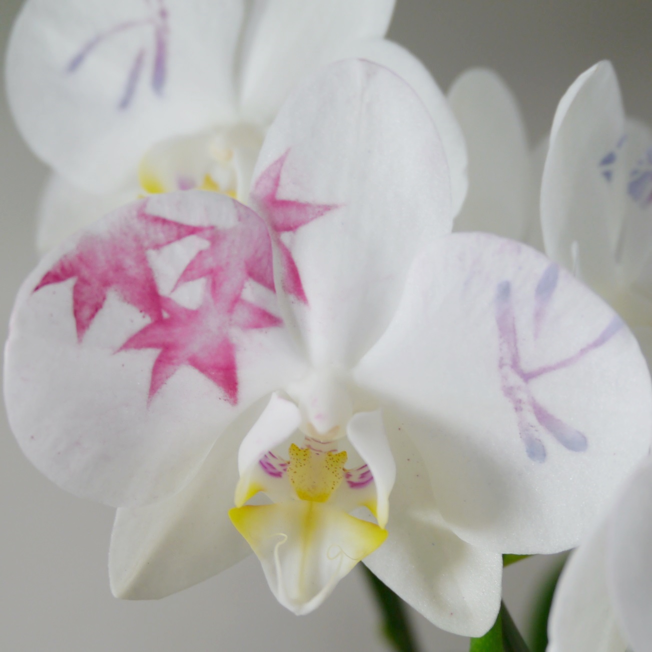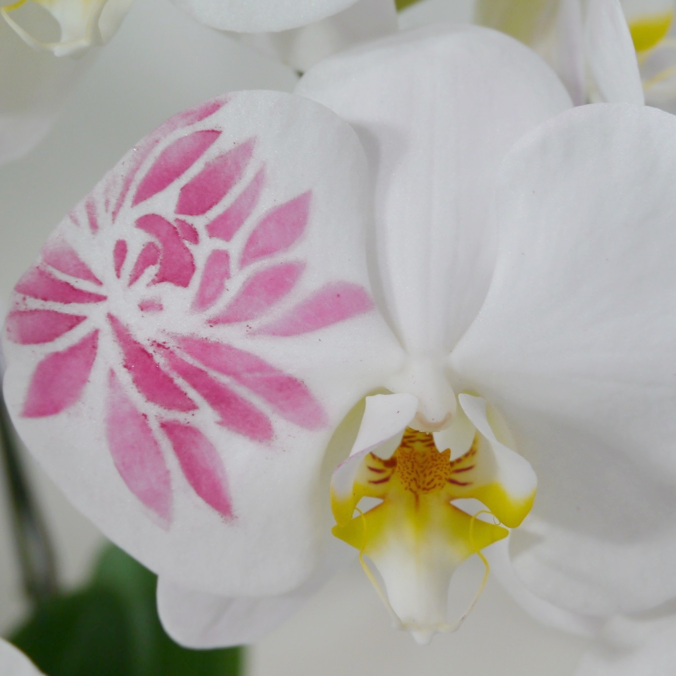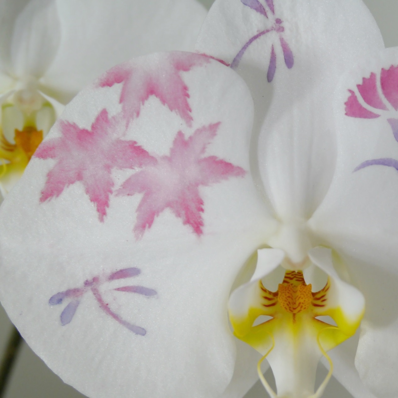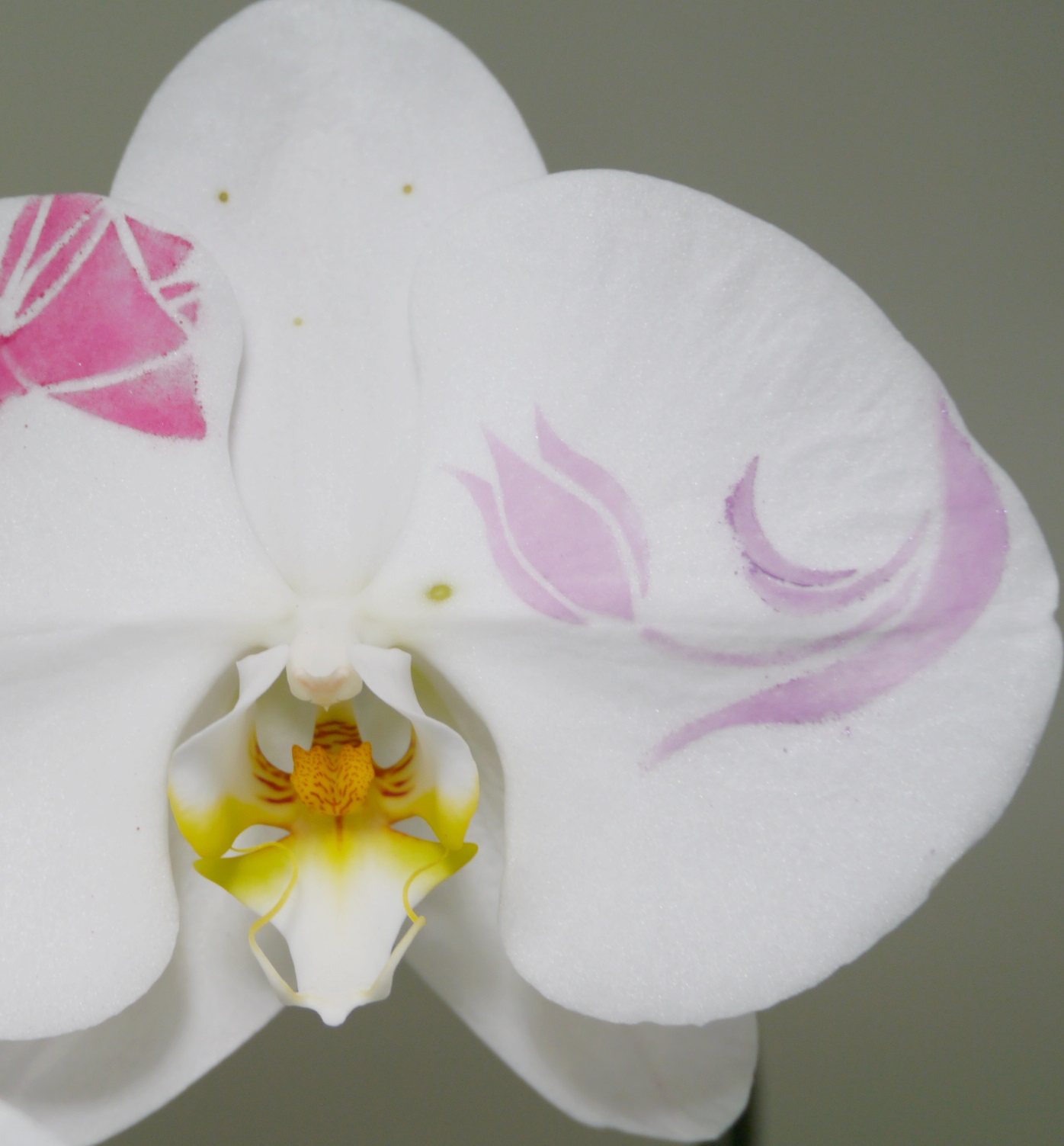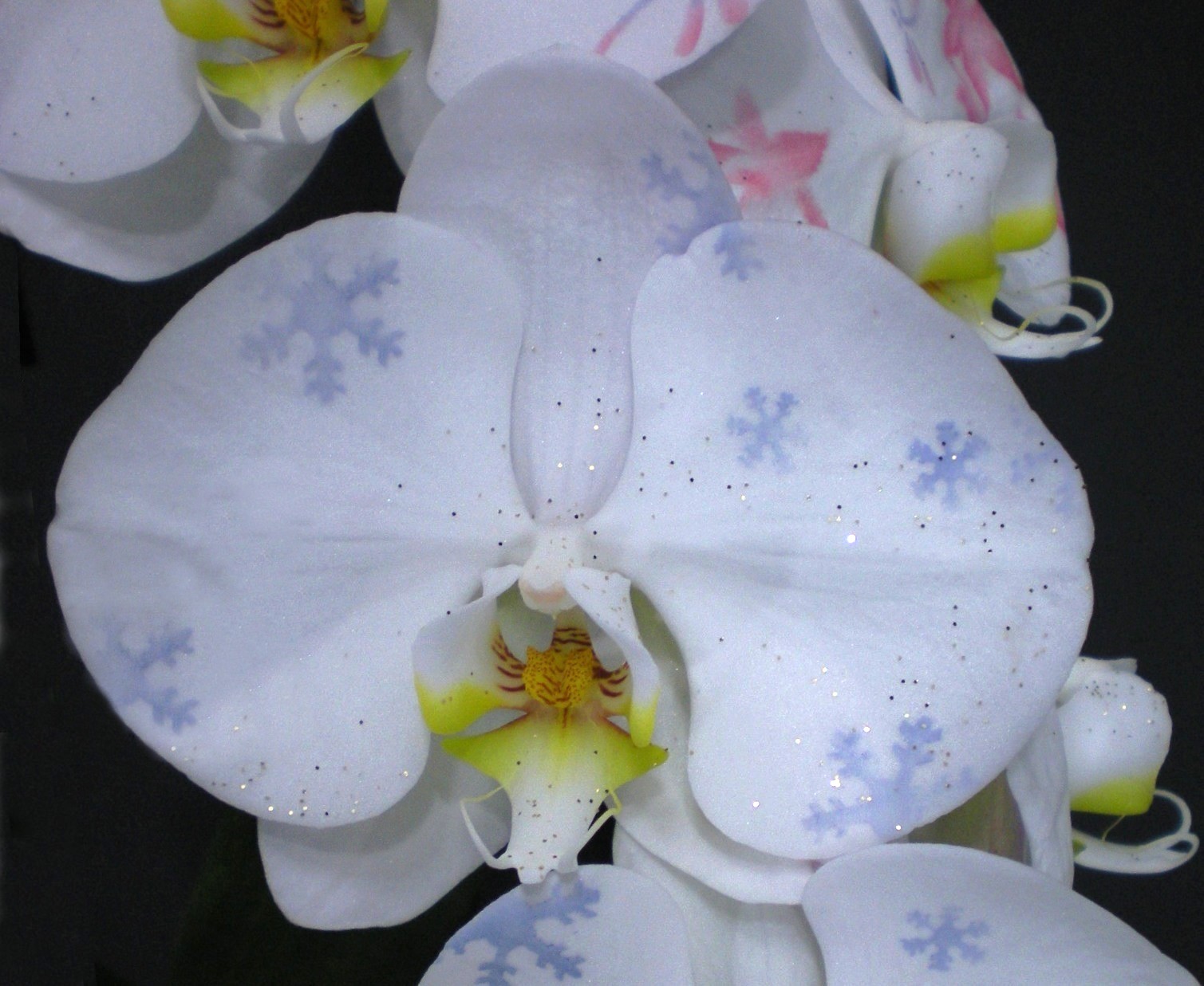 季節の絵柄やお祝いのメッセージを手作業で、胡蝶蘭に丁寧にお化粧した芸術品